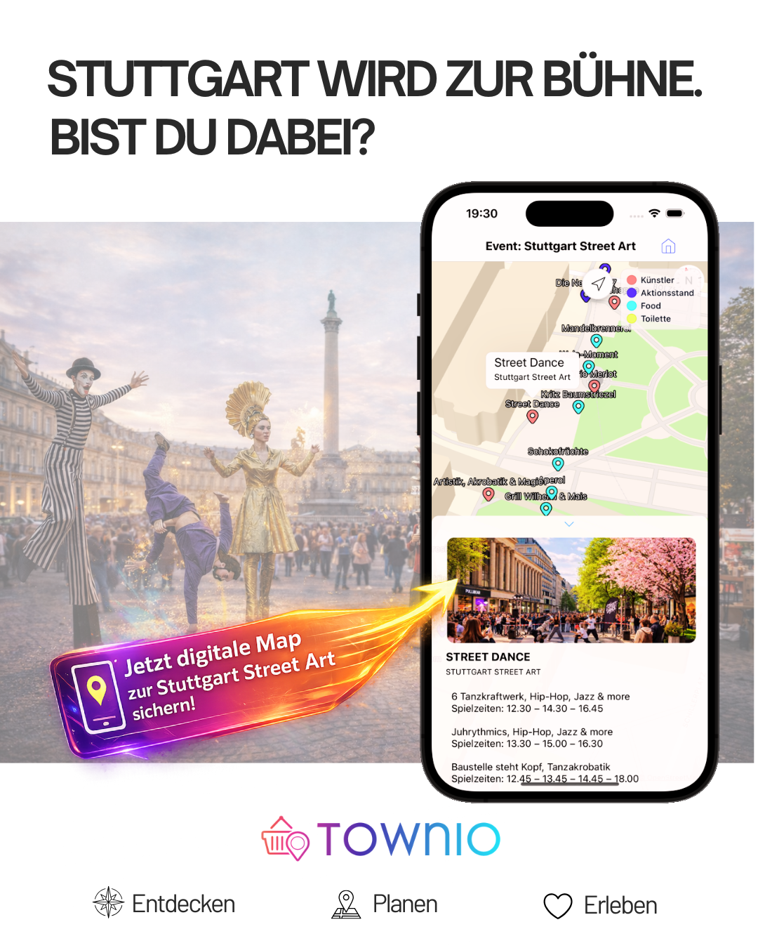 Und das Beste: Dieses Jahr könnt ihr das gesamte Event erstmals digital mit der TOWNIO App erleben!